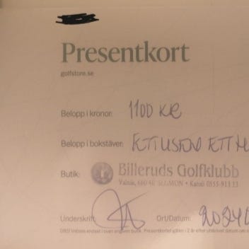 En hybrid, en järn 9, järn 7, samt en putter i märket ”Open”. Även ett S ingår från ”Future”. Finns i centrala Karlskrona.