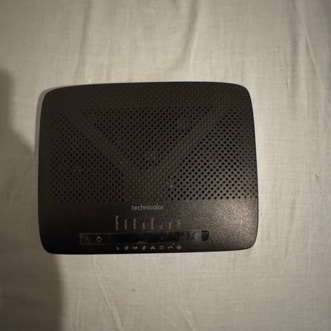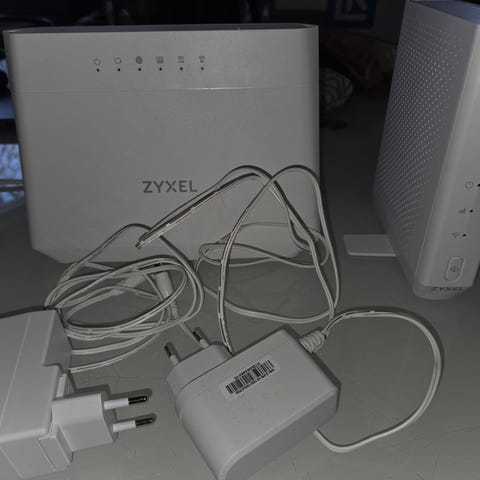 Router med flera nätverksportar och medföljande strömadapter. Enheten är vit och avsedd för nätverksanslutning.Fungerar bra, Normalt använt skick. Enkel att installera. Pris kan diskuteras vid snabb affär.