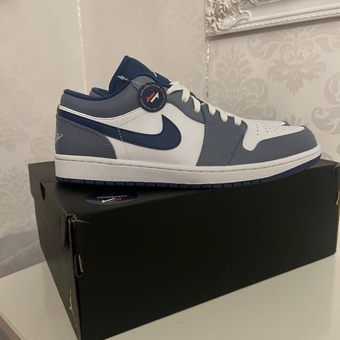 Som rubriken följer är det Air Jordan 1 Mid från 2020 i färgen Royal. Sällan använda sen dess då jag inte är stort fan av höga skor. Fint skick original box finns tyvärr inte kvar