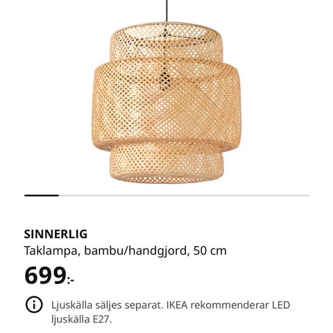 IKEA Sinnerlig stor lampa i bambu med en flätad design. 50cm längd. Säljs pga felköp.