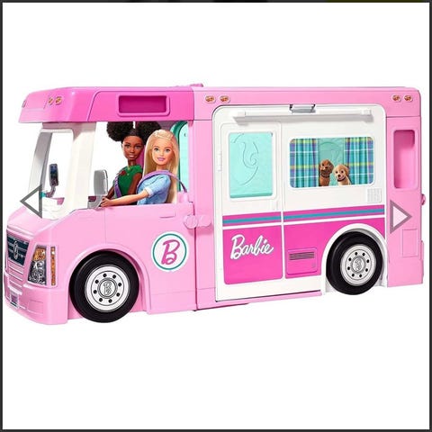 Husbil till Barbie med många funktioner: löstagbar bil, båt, pool och matplats. De flesta av de små originaldelarna finns, se bilder.