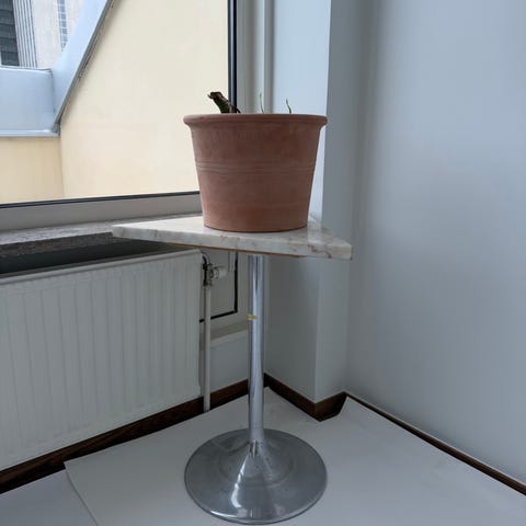Stilrent snyggt bord med marmorskiva samt glasskiva. Passande på flertal ställen såsom vid soffa, fåtölj eller säng.