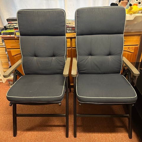 Utemöbler, 2 stolar, 1 soffa + bord. Säljes i befintligt skick. Hämtas i Jönköping.