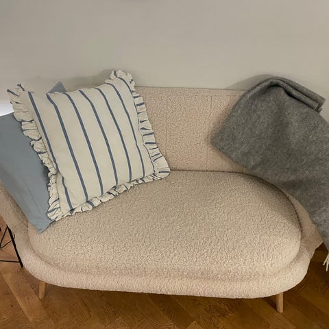 Soffan är i gott skick, med en mindre reva (se bild).