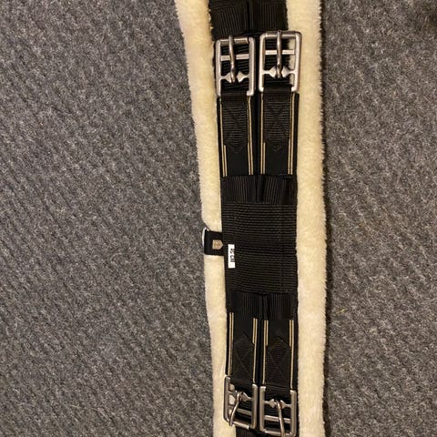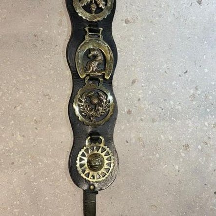 Pannband till häst tillverkat i svart läder med dekorativa detaljer. Endast använt en gång. Stl. COB