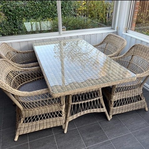 Utemöbelset med rotting och glasskiva