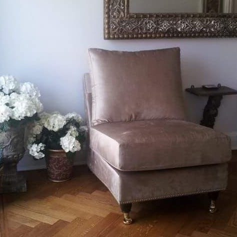 Designfåtölj i sammet/manchester – snurrfot i krom