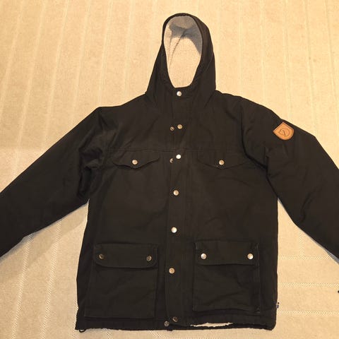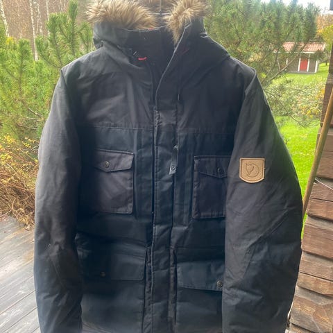 Fjällräven G-1000 jacka och byxa i grön färg. Jackan är i storlek L och byxan i storlek 52. Bra skick. Resårbanden längst ner på jackan har dock börjat gett sig. Har använt Fjällrävens vax på plaggen så därför är de lite flammiga. Hydratic är deras variant av GoreTex.