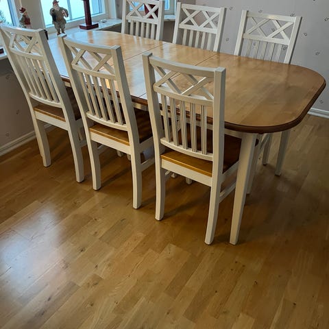 Köksbord med sex stolar med skiva