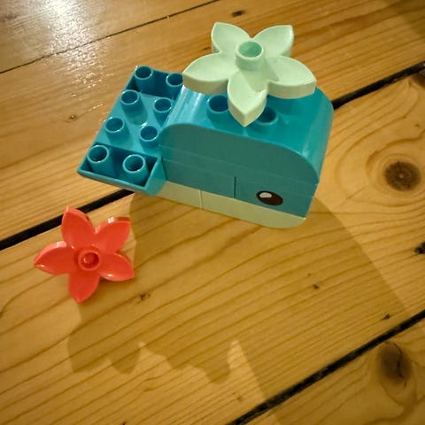 En mindre elefant av 4 bitar med blomma. Djur- och rökfritthem.