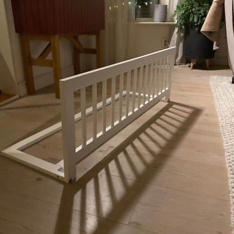 Säljer en stabil och praktisk sänghäst från Reer, perfekt för barn som sover i vanlig säng men behöver extra trygghet. Förhindrar att barnet ramlar ur sängen under natten.