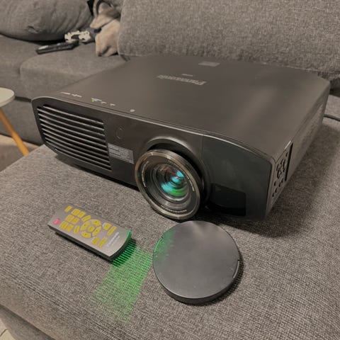 Projektorn är en Optoma UHD40. Klarar 4K och ger riktigt fin bild med biokänsla hemma. Lampan har gått 1178h och har därmed mycket kvar att ge.