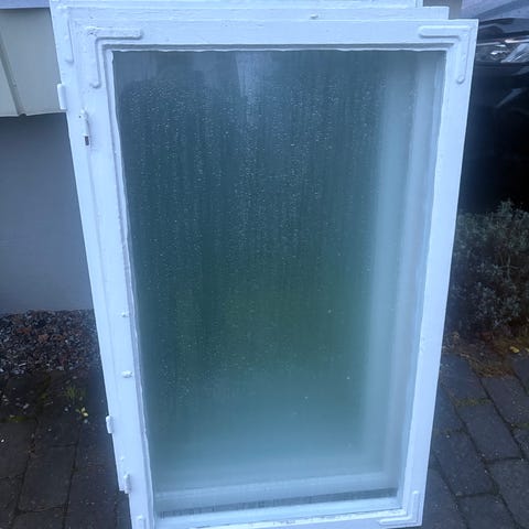7st innerbågar (varav ett helt fönster, inner +ytterbåge) med måtten ca 122cm i höjd och 54,5cm i bredd. Fönstren har en ram av trä och glasruta. Passar för växthus, orangeri eller liknande.