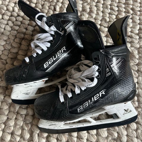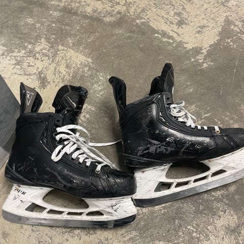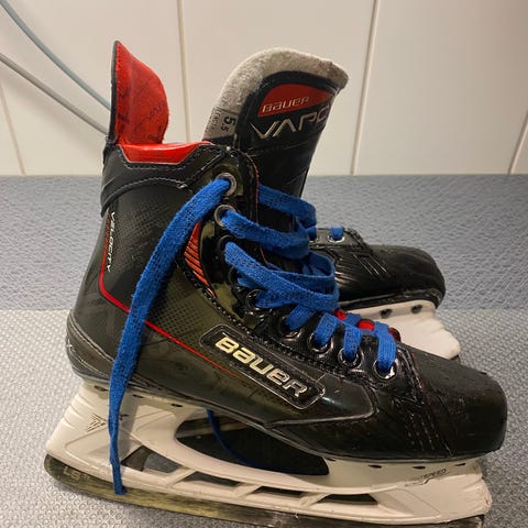 Bauer ishockeyskridskor i storlek 43 med svart och röd färg. Skorna är avsedda för ishockey och har snörning för justerbar passform.