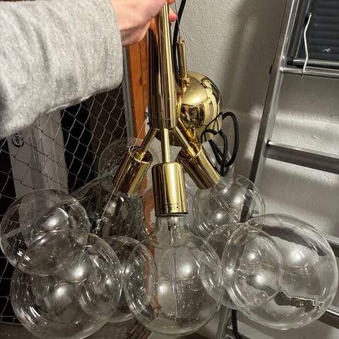 Säljer denna otroligt fina taklampan som består av 5 glaskulor i olika storlekar (35,30,25,20,15cm).