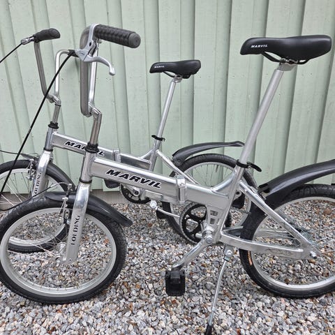 2 st Nya Minicyklar med 3 fasta växlar Fotbroms och Handbroms lågvikt godkända lås och låsvire med skärmar Pakethållare. Enkelt att fälla ihop passar till stora & små låg vikt bra till Husbilen Husvagnen Båten eller till jobbet och friluftsliv. Mycke stadig modell. 4000 kr st eller 7500 kr för bägge. Ring för mer info Tel nr 070-3740163