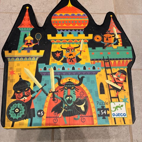 Djeco pussel med 54 bitar. Pusslet har färgglad illustration med olika figurer och detaljer att upptäcka.