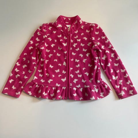 Röd fin mönstrad kofta, storlek 146/152
