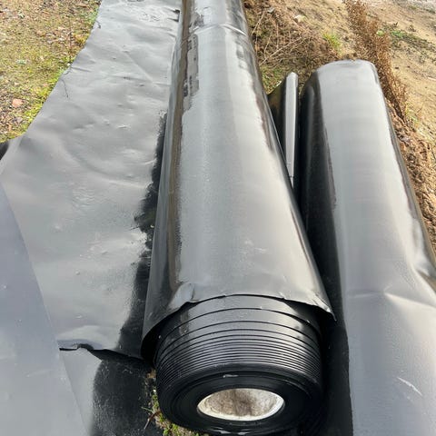 Presenning i vitt material med en reva i. Använd för skydd och täckning utomhus. Storlek 10X15 meter
