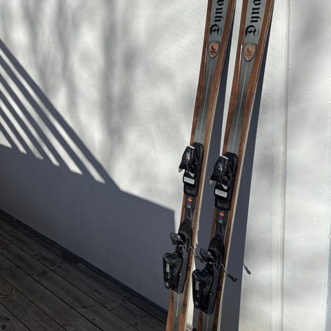 Dynastar Team Omeglass Comp skidor med Dynastar Autodrive Flex + Look pivot bindning. Belaget är i fint skick.
