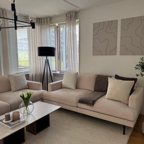 Skicket är bra överlag, och överdragen kan tvättas utan problem det enda minus är att på ena armstödet så är det en fördjupning som inte påverkar funktionen alls men kan kännas om man sätter sig på den. (Som oftast leder till chock o skratt)