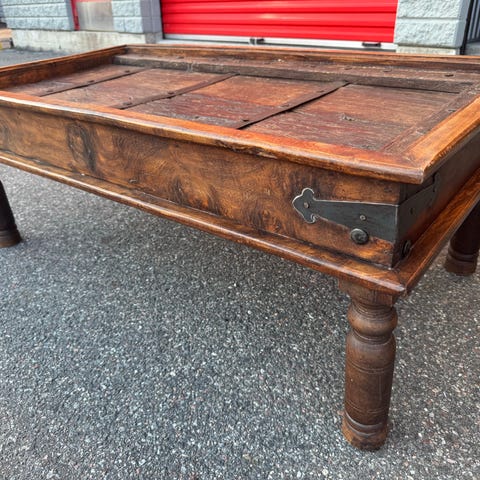 Bordskivan är gjort av en dörr från ett tempel, bordet är handmålat och har mycket karaktär och är originellt i hög kvalitet.