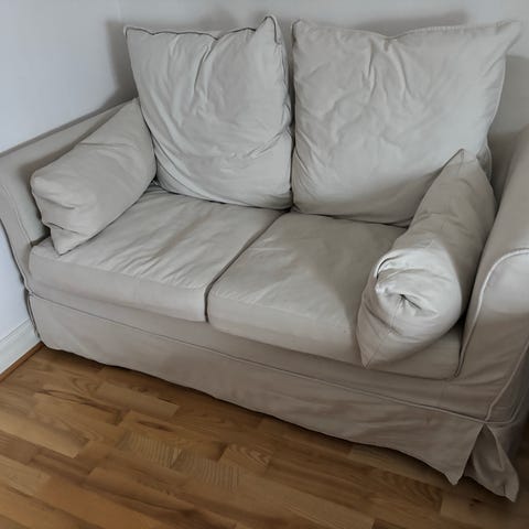 Gråvitrandig 3-sits bädddoffa i mycket bra skick. 600kr eller högstbjudande