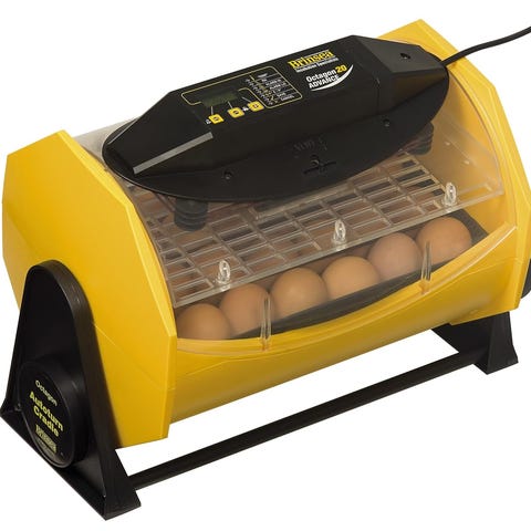 Tystgående och lättanvänd äggkläckare från Willab med automatisk äggvändning, digital display för temperaturen och fuktigheten samt inbyggd LED- ägglampa.