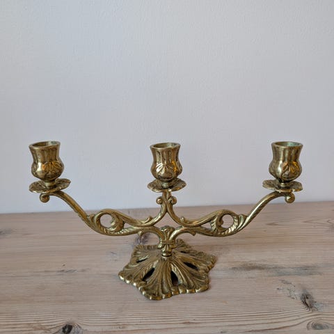Mäktig och vacker kandelaber som är försilvrad. Passar såväl till jul-, nyår eller midsommarbordet. Fin julklapp eller nyårspresent. Vikt 3,2 kg, höjd ca 40 cm, bredd ca 25 cm, diameter ca 35 cm.