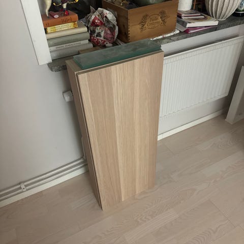 Varje skåp Bredd 40 cm, höjd 60, djup 21 cm (23 med dörr).