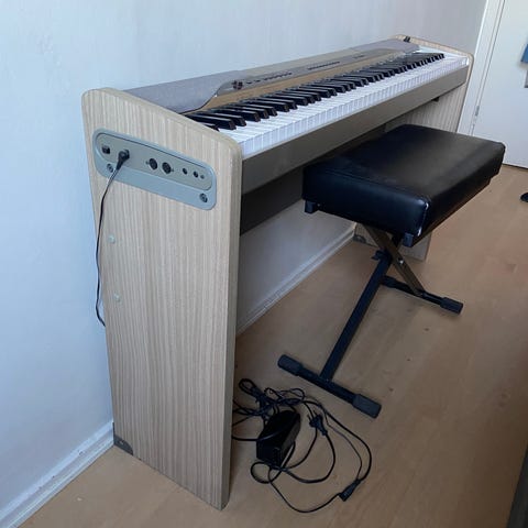 Casio Celviano AP 220 digitalpiano i mörkbrun färg, inkluderar två hörlurar samt justerbar pianopall. Passar för både nybörjare och mer avancerade pianospelare. Är i princip helt oanvänt, som nytt.