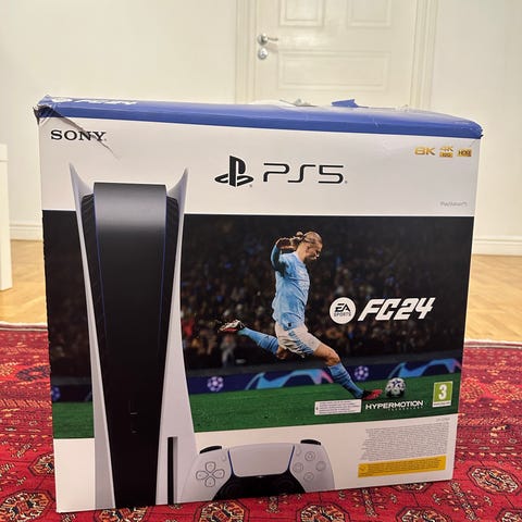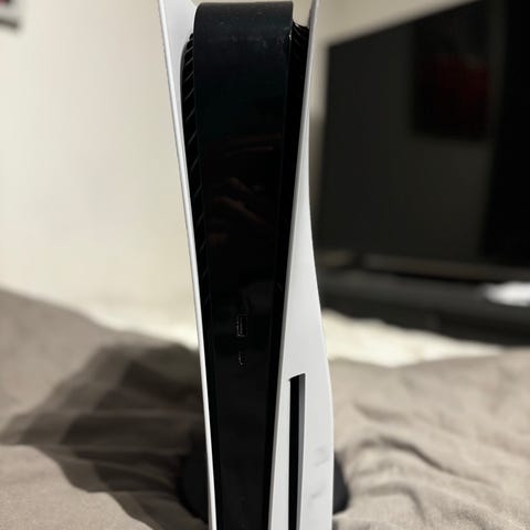 Säljer min PS5 i mycket fint skick. Konsolen är uppgraderad med vit dbrand-remsa där den normalt är svart, samt silverfärgad vertikal stand för ett mer harmoniskt och stilrent utseende i hemmet.