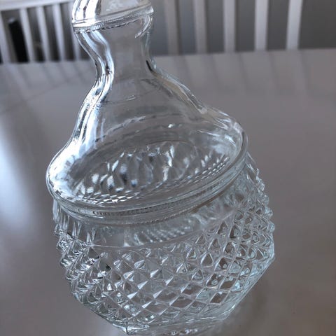Senapsglas med lock och medföljande sked i svart, tidigt 1900-tal.