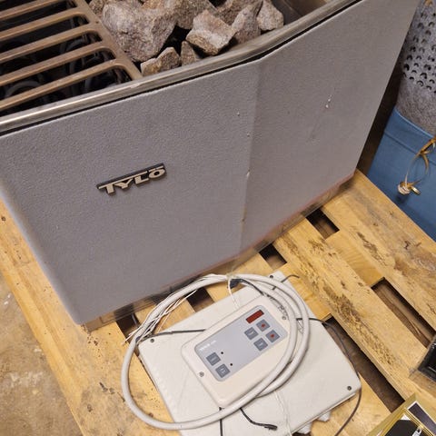 Tylö bastuaggregat Sense Commercial 6 med medföljande stenar och styr panel.