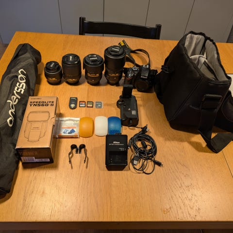 Jag säljer min Nikon D3400 kamera med 2 objektiv , 2 batterier , 128 SD card och kamera väskan.