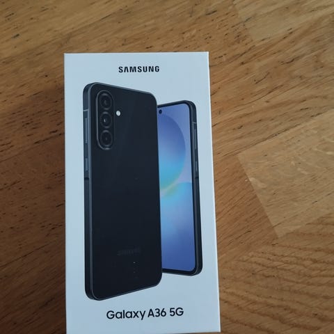 Samsung Galaxy A36 5GB mobiltelefon i svart färg.