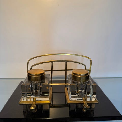 Antik bordsuppsats i handslipad kristall på silverbricka