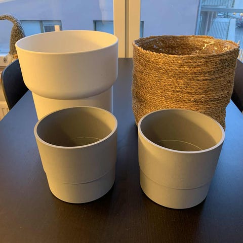 Säljer 6 st blomkrukor/ytterkrukor i olika färger och storlekar.