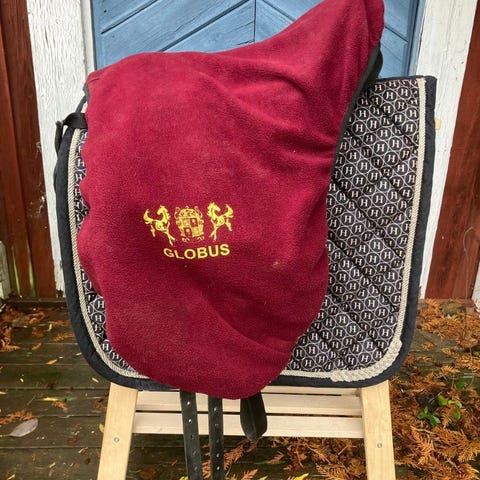 Dressyrsadel från Hubertus i bra skick, normal bom och 17 tum i storlek. Anläggningsyta är ca 45 cm