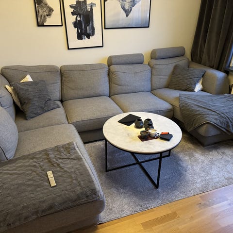 Bekväm hörnsoffa med divan och schäslong. Har varit i normalt bruk och fungerar som den ska, men är inte ny.