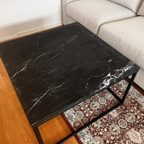 Venture Home York soffbord tillverkat i MDF med spräckligt marmormönster i gräddvit färg. Bordet är blockformat med skulpturala former och har måtten 40 cm i bredd och 45 cm i höjd. Designen är robust och industriell med rena nordiska linjer, lämpligt som soffbord eller piedestal.