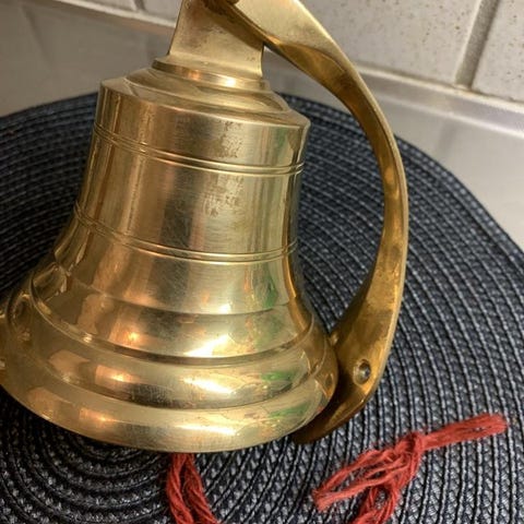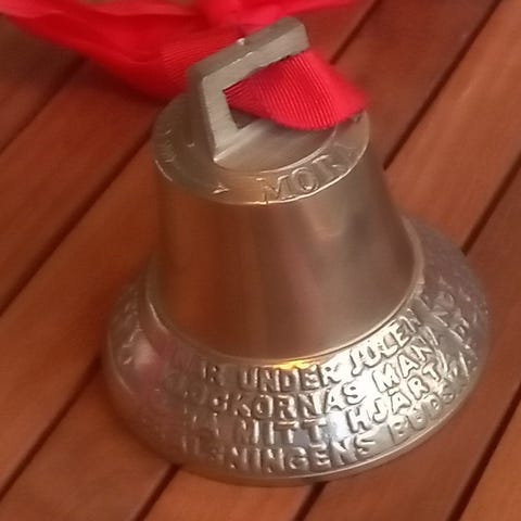 Skeppsklocka -Julklocka, vintage, hög och vacker klang i mässing med Julmotiv