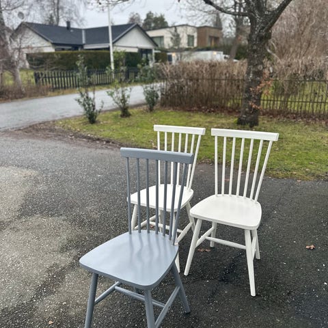 Tre vita pinnstolar i modernt utförande 300kr/st