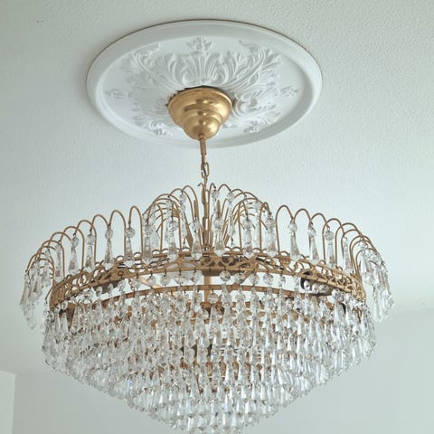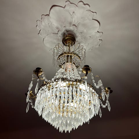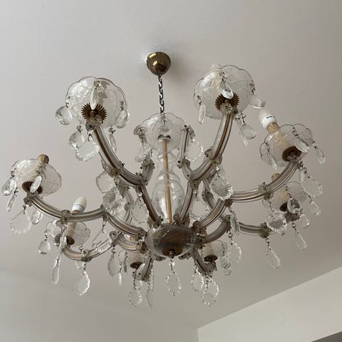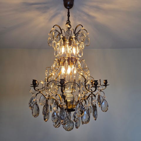 1800-tals ljuskrona med prismor som är köpt på auktion, säljes nu pga flytt.