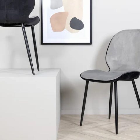 Svarta ben i metall och sits i sammet i färgen grå/beige