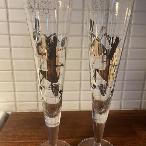 2 st Lindshammar Ölglas / Pokalglas med guldkant