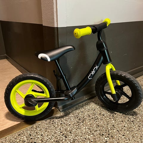 Silverfärgad balanscykel för barn med svarta hjul