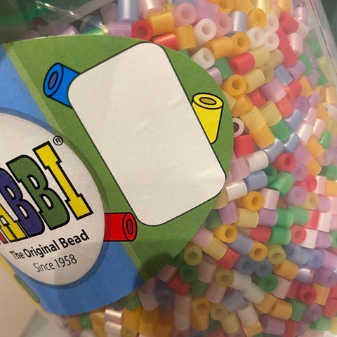 En bra kloss plockåda för barn. Denna plockhink är genomskinlig och visar barnen hur de olika bitarna trillar ner i hinken.