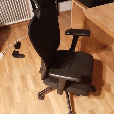 Bakre delen av höger armstöd knäckt. Ingen synlig defekt men ger inte fullt stöd hela vägen bak.