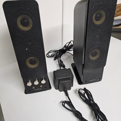 Creative Gigaworks T40 Series II högtalare för dator med justerbara rattar för ljudkontroll. Designade för att ge ljudåtergivning med fokus på detaljer. Inkl. ström- och anslutningskabel till dator.